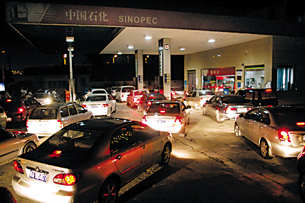 圖:漲價(jià)謠言瘋傳 油站夜排長龍 圖片來源:羊城晚報(bào)