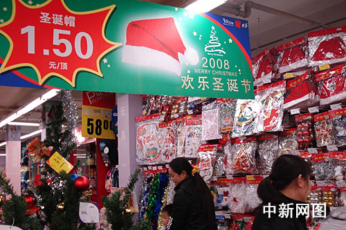 在杭州市下城區(qū)的樂(lè)購(gòu)超市,圣誕專柜打出醒目的廣告,一頂圣誕帽只需1.5元,好又多鳳起店更是甩出一元特價(jià)圣誕帽,歐尚、世紀(jì)聯(lián)華等超市也低價(jià)銷售。一位正在挑選圣誕帽的顧客說(shuō):“一斤白菜也就一塊多,今年圣誕飾品在價(jià)格方面便宜了不少。以往的折扣價(jià)都在節(jié)日過(guò)后才有,現(xiàn)在離圣誕節(jié)還有十天,就已經(jīng)打折了。”