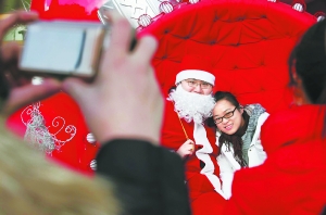 19:00,禮品店。單身男顧客猶豫不決,不知道該送什么圣誕禮物給女朋友;一旁店員小姐大力推薦一款紅色的毛絨牛玩具,標(biāo)價(jià)98元。小姐振振有詞地說(shuō):今年經(jīng)濟(jì)危機(jī),股市下跌搞得大家心情都不好,買什么禮物都不如買“紅!保认笳髁嗣髂甑膶傧,又有“牛氣沖天”的好口彩。記者發(fā)現(xiàn),近日來(lái)各種“牛”造型的玩具、工藝品在公司抽獎(jiǎng)、朋友送禮時(shí)都成了主角,看來(lái)西方的圣誕文化也要融合中國(guó)特色。