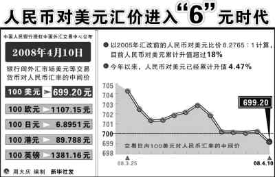 4月10日,人民幣對美元的中間價突破7元大關(guān),以6.9920改寫了匯改以來的新高紀(jì)錄,人民幣匯率毫無懸念地進(jìn)入“6時代”。