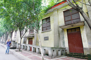 重慶大學A區(qū)后校門樹陰掩映,鳥鳴啾啾中,一棟黃色墻體、灰色瓦頂?shù)睦辖ㄖP立。旁邊碑刻顯示,“七七抗戰(zhàn)大禮堂”已歷經72年風雨。