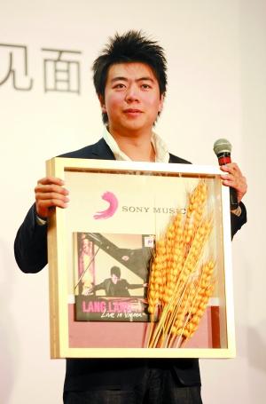 唱片公司為郎朗送上大麥祝他新專輯“大賣”。本報記者 郭延冰 攝