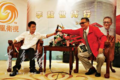 《李戡戡亂記》里有不少抨擊之語(yǔ),有人將李戡和大陸的韓寒相提并論。在昨天的采訪中,李敖讓兒子回應(yīng)此事,兒子有點(diǎn)緊張,只說(shuō)“大陸那么多人,不知為何總拿韓寒和自己相提并論”云云。李敖急了,接過(guò)麥克風(fēng)為兒子撐腰,“韓寒如果一輩子寫小說(shuō)、賽車,那都沒問題。他如果想談一點(diǎn)時(shí)事,那顯然就缺乏深度。能和我談司馬光的《資治通鑒》嗎?沒看過(guò),人家根本就不會(huì)和你談。韓寒一進(jìn)入這個(gè)境界,就會(huì)出局。”李敖隨即又露出驕傲的神色:“韓寒比我兒子大10歲,這10年,我兒子會(huì)翻江倒海,去玩賽車,也未可知!
