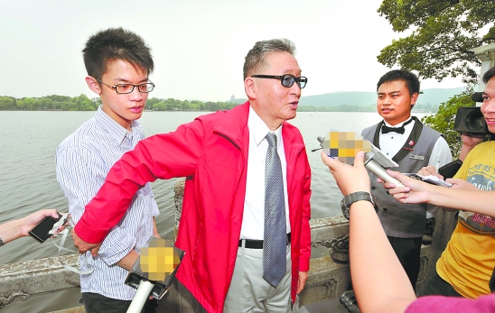 昨天下午,杭州劉莊,只睡了4個(gè)小時(shí)的李敖在接受完省領(lǐng)導(dǎo)接見(jiàn)、媒體訪問(wèn)和午餐以后,本來(lái)已經(jīng)回房午休了,結(jié)果中途他拉著兒子的手出來(lái),兩個(gè)人悄悄地走到湖邊欣賞風(fēng)景。那時(shí),留在劉莊的記者所剩不多,看到父子兩個(gè)親昵交談的背影都有點(diǎn)不好意思上前打擾。終于有人鼓起勇氣和李敖搭話,他就感慨:“我們一家人其實(shí)從來(lái)沒(méi)一起出來(lái)旅游過(guò),這次以后也許也沒(méi)有更多的機(jī)會(huì)了!庇浾弑桓腥玖耍e起相機(jī)為他們父子在湖邊留下合影。