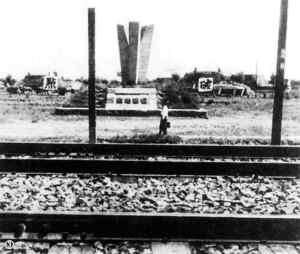 1938年,日本關(guān)東軍為了永久紀(jì)念那次戰(zhàn)爭陰謀,在當(dāng)年的爆破地點附近用鋼筋混凝土建造了一座碑,并為該碑加上了寬大穩(wěn)固的梯形基座。日軍不僅在基座正面刻了“爆破地點”四個字,還在碑后數(shù)米之外立了四個牌子,分別寫上“爆”、“破”、“地”、“點”四個大字,同時,原有的條形標(biāo)志木牌也一并保留。從遠(yuǎn)處望去,整個碑就像是扎入底座里的一枚炸彈,因此也被人們形象地稱作“水泥炸彈”或“炸彈碑”。