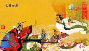 現(xiàn)代人繪制的“完璧歸趙”,璧為傳統(tǒng)的中空圓環(huán)狀。(網(wǎng)絡圖片)