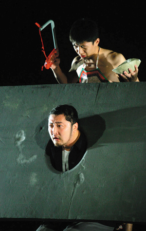 《回家》講述了一位老年癡呆癥患者想回家卻不能如愿的經(jīng)歷,不同于單線條敘述或故事性較強(qiáng)的商業(yè)話劇,該劇主角只是不斷夢(mèng)囈,訴說(shuō)著對(duì)自己的不滿、對(duì)過(guò)去的自責(zé)以及對(duì)當(dāng)下社會(huì)的種種困惑。全劇看似凌亂發(fā)散,實(shí)則容納了大量的信息,地溝油、三聚氰胺、畢業(yè)即失業(yè)、高房?jī)r(jià)、全球變暖、視頻裸聊、不再有一輩子的感情等一系列社會(huì)熱點(diǎn)問(wèn)題都被搬上了舞臺(tái)……雖然主題嚴(yán)肅,但也不乏笑點(diǎn),演出過(guò)程中現(xiàn)場(chǎng)不時(shí)爆發(fā)出觀眾會(huì)心的笑聲。該劇的舞臺(tái)設(shè)計(jì)相當(dāng)“樸素”,在相對(duì)空曠的舞臺(tái)上,主演黃澄澄和趙雷棋并沒(méi)有通過(guò)化妝去表現(xiàn)角色的年齡感,而是在揣摩老者的心理特征和思維方式后,以表演呈現(xiàn)出蒼老感。其他年輕演員也表現(xiàn)不俗,尤其在結(jié)尾處,他們以大量夸張的肢體動(dòng)作配以聲嘶力竭的控訴,掀起了全劇的最高潮。