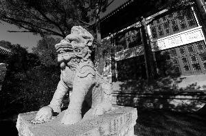 在文津街國家圖書館門前,一對威武的石獅滿面滄桑,雙爪和臀部還有修補的痕跡!皼]錯,這對劫后余生的石獅就是來自圓明園!眰鬟_室的守門人對石獅的來歷略知一二。石獅長170厘米,高約300厘米。上世紀30年代由圓明園移至此處。