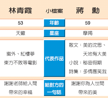 穿過大明星光環(huán),蔣勛以寬闊的人世歷練看到她做為人的情感與脆弱,還有做為母親的欣喜,“我最愛看你跟女兒講電話,整個(gè)臉都亮了!笔Y勛的理解和引領(lǐng),也為林青霞在不準(zhǔn)她肥、不許她丑的世界中,帶給她能自在處世的空間。
