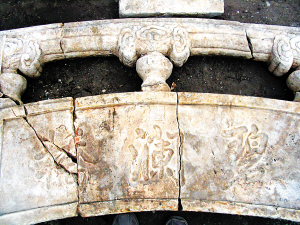 據(jù)他介紹,在圓明園中目前已經(jīng)使用的修復(fù)方式還體現(xiàn)在對(duì)含經(jīng)堂的保護(hù)上。這也是一種傳統(tǒng)的有效方法。就是用一些整理出的殘余構(gòu)件,把遺址的“臺(tái)子”等基礎(chǔ)搭建出來(lái)。不再做任何破壞人為景觀的復(fù)建。