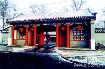 張自忠路23號,舊時的門牌據(jù)分析可能是鐵獅子胡同5號,后曾改為地安門東大街23號,在張自忠路的西段路北,坐北朝南,是一座由東、西3個院落組成的宅院,建筑面積1500平方米。街門面南,是面闊三間的府門,府門兩側各有1間倒座南房,應是當年的警衛(wèi)室和回事房(傳達室)。西院的一進院有正房5間,東、西廂房各5間;二進院有正房5間,東耳房3間,西廂房5間,東廂房1間。東院有南房3間,東房5間,北部為花園,花園內有假山、亭軒等建筑;宅院四周有回廊環(huán)繞。當年,孫中山先生住在西院二進院的正房。孫中山先生逝世后,治喪委員會決定在鐵獅子胡同孫中山居室門口懸掛“孫中山先生逝世紀念室”匾。該室為內外套間,室內陳設簡樸。外間西墻上鑲著一長方形漢白玉刻石,上刻“中華民國十四年三月十二日上午九時二十五分孫中山先生在此壽終”,刻石上方懸掛孫中山遺像,遺像右邊鏡框里為《總理遺囑》,左邊鏡框里為《致蘇聯(lián)書》,靠墻的條案上放著《建國方略》、《中山全書》等,條案兩側各有一個花架,花架上擺著青松造型盆景。