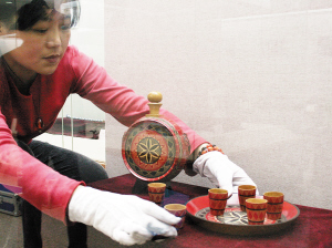 昨天上午9時(shí)許,工作人員輕輕取出一只只紅色或黃色囊匣。每只特制的文物囊匣里,都裝著與之一一對應(yīng)的國禮精品。這些國禮除了部分原來就“穿”著來自各個(gè)國家的“元配”囊匣外,大部分包裝是博物館根據(jù)禮品的“高矮胖瘦”量身定做的,每個(gè)囊匣大小不一。記者看到,此次運(yùn)來的這批禮品中,不乏一些大型禮品,比如一只木雕金漆龍舟,足有半米多長。而有的特別容易破碎的,工作人員也經(jīng)過了特殊處理。如1964年10月剛果總統(tǒng)阿方斯·馬桑巴·代巴贈給周恩來總理的黑釉五彩人物圖案陶罐。經(jīng)過精心設(shè)計(jì),這件禮物的“外衣”剛好將其裹得“嚴(yán)絲合縫”,保護(hù)得十分嚴(yán)密。