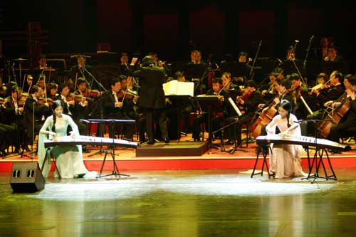近日來,這些活躍于國際樂壇、享有極高聲望的華人音樂家在國家大劇院內(nèi)進行了緊張的彩排。黃英的《春江花月夜》、殷承宗的鋼琴協(xié)奏曲《黃河》,齊•寶力高的《心靈之歌》,袁莉袁莎姐妹的古箏曲目《漁舟唱晚》響徹國家大劇院的歌劇廳,激蕩人心。本次音樂盛典的一大特色是“中國旋律,西式演繹;傳統(tǒng)藝術,現(xiàn)代表現(xiàn)”,這在連續(xù)兩日袁莉袁莎姐妹古箏演奏中得到了極好的體現(xiàn)。她們表示,古箏是中國的傳統(tǒng)樂器,但這一次就與交響樂合奏,擴大了傳統(tǒng)的舞臺,可以使更多的觀眾了解接受欣賞這一藝術。是一項很好的嘗試。在排練的同時,這些藝術家們,時刻不忘災區(qū)。他們多次詢問災區(qū)的情況,關注還在返鄉(xiāng)途中的同胞。不管他們能否有機會聽到這些音樂,都希望音符的傳揚可以給他們帶去力量和希望。