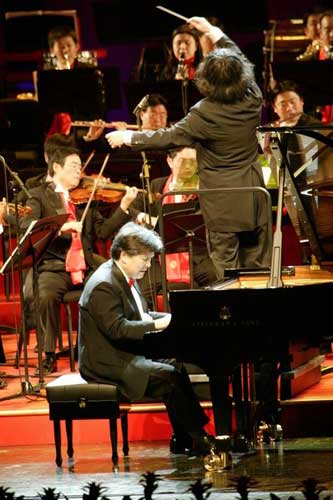 殷承宗現(xiàn)居美國,當聽說中國南方正遭遇50年一遇的雪災時,這位愛國的鋼琴家受到邀請后義無反顧地前來演出,而大年三十當天他還得飛回美國。在音樂會上,殷承宗再現(xiàn)經(jīng)典,把根據(jù)《黃河大合唱》改編的鋼琴協(xié)奏曲《黃河》,演繹得氣勢恢宏。另一個著名的民歌演唱家宋祖英,本已為南方雪災籌集資金演出多場,嗓子發(fā)炎,但為給災區(qū)人民帶來捐款,不顧疾病堅持上場。