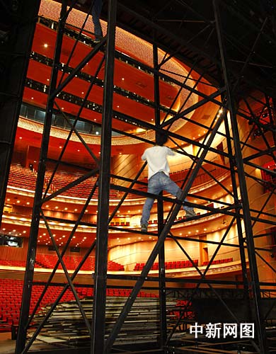 正在現場忙碌著的《圖蘭朵》一劇的舞臺監(jiān)督管建波先生告訴記者:“升降臺架的安裝是本次裝臺過程中比較復雜和繁重的一個環(huán)節(jié),總高度10米的超長活動范圍需要涉及到許多金屬支架的安裝,任何一個零部件的安裝不善,都可能會導致升降臺架不能正常使用,演出無法順利進行,甚至是讓站在高臺上的演員發(fā)生危險。”