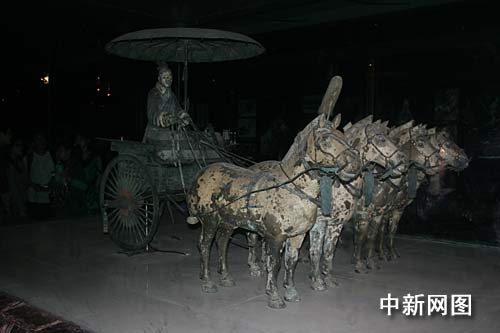 組圖:網(wǎng)媒記者與秦始皇陵兵馬俑“親密接觸”(2)