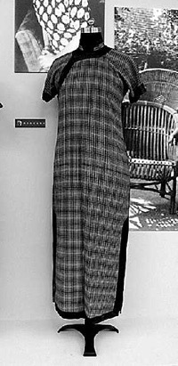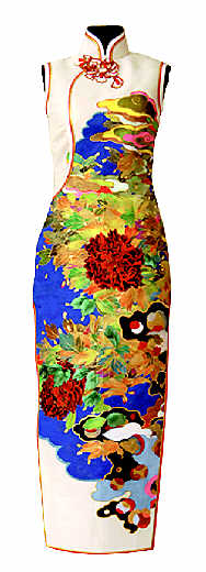 這是一個很有意思的展覽。對于今天的大眾來說,旗袍和王家衛(wèi)電影中老上海的懷舊氣氛、東方式的曖昧欲望、被約束卻又有節(jié)制地誘惑著人的身體交纏在一起,是一個符號一樣的東西。而“百年旗袍展”則比較嚴肅,它展示的這些旗袍實物,集歷史性、學(xué)術(shù)性、藝術(shù)性、觀賞性于一體,從清末到二十世紀末,跨越了整整100年的時間。展出的百款經(jīng)典旗袍按照時間順序分為五個部分:清末、20世紀初葉、20世紀20年代、20世紀三四十年代、當(dāng)代。這些款式經(jīng)典、色彩豐富、紋飾紛呈的展品均由專家精心遴選而出,體現(xiàn)了各個時期旗袍最主要的特點與風(fēng)格。