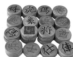 早期的象棋,一套棋具由棋、箸、局三種器具組成。棋共六子,分別為:梟、盧、雉、犢和兩枚塞。箸,相當(dāng)于骰子,在棋之前先要投箸。局,是一種方形的棋盤。比賽時,“投六箸,行六棋”,斗巧斗智,相互進(jìn)攻逼迫,而置對方于死地。在這種棋制的基礎(chǔ)上,后來又出現(xiàn)一種叫“塞”的棋戲,只行棋不投箸,擺脫了早期象棋中僥幸取勝的成分。