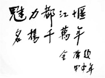 享譽海內外的武俠大師金庸先生與四川頗有淵源,除了在作品中多次將四川名勝寫入筆端外,更于2004年秋天,來到了美麗的天府之國,實現(xiàn)了“暮年入川”的夙愿。2004年9月21日,金庸攜夫人及好友一行飛抵成都,在其后的行程中,金大俠不僅品嘗了地道的川菜、小吃,還在九寨溝、三星堆以及熊貓基地好好地游覽了一番。最讓大俠高興的是,9月26日,他游覽了自己心儀已久的青城山和都江堰。當天,青城派掌門人劉綏濱帶領門下13名高徒為迎接金大俠的到來,展示了青城派的“雙劍合一”和“11人劍陣”。在刀光劍影中,金大俠雙手合十,連喊“佩服”。之后,金庸在青城眾高手的保護下,前往天師洞“坐而論道”。游覽完青城山,金庸更驅車趕到二王廟,俯瞰都江堰。夫人也拿出隨身攜帶的小型DV把都江堰的美景悉數(shù)收入“囊”中。據悉,當時江堰市剛當選央視評選的“魅力城市”,作為此活動評委的金大俠曾投了都江堰一票。