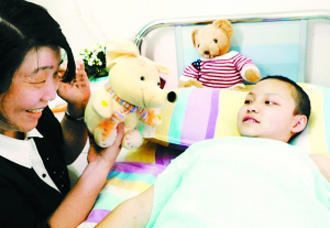 昨天,長(zhǎng)江文藝出版社組織他們社的作者畢淑敏、張秋芳、曾子墨、孫云曉等到醫(yī)院看望日前在嫣然天使基金的援助下來(lái)京接受治療的災(zāi)區(qū)受傷被截肢的3個(gè)孩子,為孩子們提前過(guò)六一。相比上周3個(gè)孩子剛到北京時(shí)的驚恐的狀態(tài),現(xiàn)在三人的情況從身體到心理都有了不同程度的好轉(zhuǎn)?吹疆吺缑魹樗麄儙(lái)的可以錄音“會(huì)說(shuō)話”的毛絨玩具,三個(gè)孩子都露出了難得的笑容。