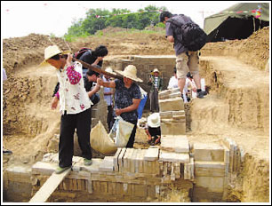 南朝古墓挖掘現(xiàn)場。