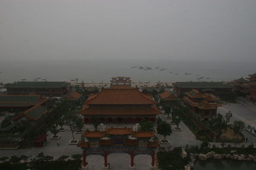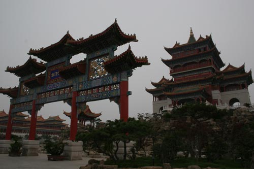 采訪團(tuán)一行24日來(lái)到由山東蓬萊民營(yíng)企業(yè)家新建的休閑景區(qū)三仙山。園內(nèi)亭臺(tái)樓閣、小橋流水,模仿北方皇家園林之雄,并配以煙霧繚繞,刻意營(yíng)造出一派人間仙境的效果。