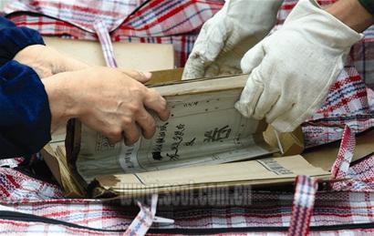 “這些受潮或遭肢解的檔案卷必須要經過除濕、蒸干、消毒、殺蟲、凍干等諸多保護環(huán)節(jié)。以蒸干為例,失去水分后的檔案會變得像一塊‘硬磚’,只能小心地一層層剝開,每揭一頁夾一層干燥紙來保護!斌w態(tài)有些發(fā)福的張新吃力地蹲在地上,仔細地清點裝有檔案的塑料編織袋,“今天的發(fā)掘應該說比較順利,一上午就運走了兩卡車,約有8000多卷,但不少檔案已受潮或碎裂,后期還要仔細修補和保存。”張新說,他們事先準備了1000個編織袋,但到中午時分基本告罄,只得緊急調來1000個支援,“我們樂觀地估計,這次搶救性挖掘能救出五六萬卷文物檔案,基本保住了羌族‘血脈’!”
