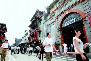 大柵欄地區(qū)東起前門(mén)大街,西至南新華街,南鄰珠市口西大街,北接前門(mén)西大街,總占地面積為1.1平方公里,是北京城區(qū)歷史延續(xù)最長(zhǎng)的傳統(tǒng)市井商業(yè)區(qū)。目前,大柵欄商業(yè)街上仍以老字號(hào)產(chǎn)品及傳統(tǒng)商業(yè)相關(guān)服務(wù)為主要特色。重點(diǎn)老字號(hào)店鋪有同仁堂、張一元、內(nèi)聯(lián)升、瑞蚨祥、步瀛齋、大觀樓和狗不理、張小泉刀剪店共8家,占整條街店鋪總數(shù)的14.3%。這8家老字號(hào)企業(yè)營(yíng)業(yè)面積占整條街總營(yíng)業(yè)面積的27.7%,年銷(xiāo)售額約占整條街總營(yíng)業(yè)收入的75%。