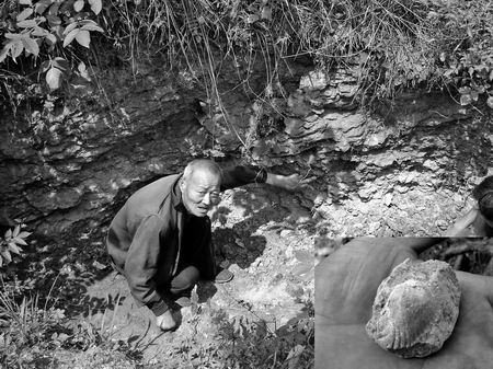 樊永慶老漢指認化石發(fā)掘層