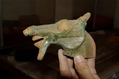 12日下午,記者來到武威市考古研究所文物庫房,文物工作者正在認(rèn)真地將每一件文物進(jìn)行整理。記者注意到,除了“雞鴨成群”的壯觀場面外,還有兩只靜臥的大尾巴狗、狀如“牛魔王”的鎮(zhèn)獸,件件令人嘆為觀止,也令在場的文物考古專家贊嘆。