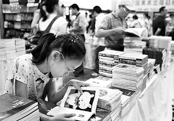 各出版社力推的作品中,娛樂(lè)明星的寫(xiě)真、自傳也大幅減少。在上海文藝出版社的展臺(tái),力推的作品包括《莫言最新長(zhǎng)篇集結(jié)系列叢書(shū)》《王立群讀<史記>之呂后》《馬瑞芳趣話(huà)紅樓夢(mèng)》《孽債Ⅱ》《上海新銳作家文庫(kù)》等文學(xué)、歷史類(lèi)圖書(shū),而昨天占據(jù)該社銷(xiāo)售排行榜前幾位的,也都是這些圖書(shū)。