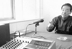 單田芳在家錄評(píng)書時(shí)全神貫注