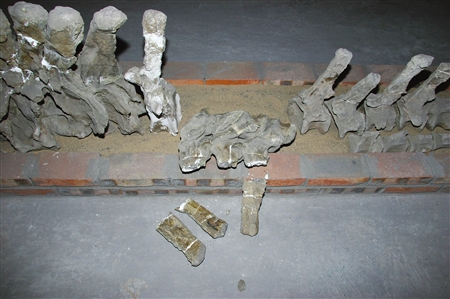 據(jù)恐龍博物館館長(zhǎng)周遠(yuǎn)明介紹,地震發(fā)生后,館領(lǐng)導(dǎo)紛紛用電話通知館內(nèi)值班的保衛(wèi)人員加強(qiáng)戒備,在保障人身安全的前提下,加強(qiáng)巡邏全力保證國(guó)寶化石的安全。昨日上午,館內(nèi)組織專家對(duì)館藏化石的3個(gè)倉庫進(jìn)行清點(diǎn),除了3號(hào)倉庫的防盜門變形無法打開外,其余1、2號(hào)倉庫內(nèi)的珍貴化石大部分完好無損,和平永川龍、太白華陽龍等“鎮(zhèn)館之寶”均安然無恙;不過,有8件恐龍化石發(fā)生斷裂,其中,李氏蜀龍標(biāo)本尾追2、3、4號(hào)神經(jīng)棘與椎體斷裂;天府峨眉龍1號(hào)背椎神荊棘斷裂;鸚鵡嘴龍左掌骨脫落。