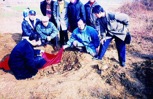 資料圖片:劉銘傳骨灰出土?xí)r的場(chǎng)景