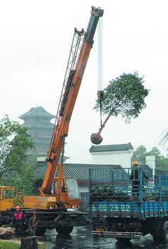 “來了,來了……”在眾人的歡呼聲中,昨日上午10時(shí)許,一輛掛著“劉少奇永遠(yuǎn)活在人民心中”大紅橫幅的加長(zhǎng)貨車,緩慢地駛進(jìn)了劉少奇紀(jì)念館。“慢點(diǎn),小心,悠著點(diǎn)……”隨后,在紀(jì)念館工作人員的指揮下,等候在花明樓前的大吊車將一株株不斷飄散著濃郁香氣的桂花樹從貨車上卸了下來,隨后將分別栽種在花明園內(nèi)。