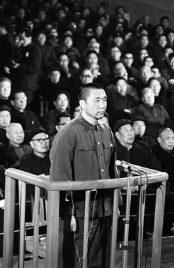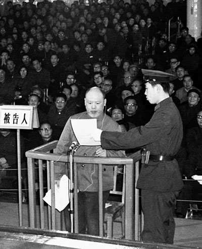 1980年11月20日下午3 時(shí)整,北京正義路,審判林彪、江青反革命集團(tuán)案特別法庭庭長江華宣布開庭。10名主犯受審。
