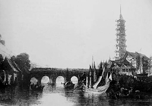 由西方畫家繪制的大報(bào)恩寺及琉璃塔圖。