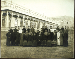 這幀老照片背景為南開學校教學樓。照片上的人共分3排,前排為老師,有7人;中后排為學生,共28人。其中后排右數(shù)第四人就是風華正茂的周恩來。前排右數(shù)第三人則為校長張伯苓,緊挨其坐的唯一外國人,為照片的原收藏人艾伯特。照片中周恩來與同學手托一鏡框,內(nèi)有“含英咀華”4字;與其對應的左邊,另兩學生亦托一菱形獎牌,上書“南開學校國文特試優(yōu)勝紀念”。