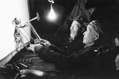 不過,演戲?qū)λ嚾藖碚f,又不僅僅是賺錢的手藝,有一首民謠唱得好“走遍天涯到處是吾家,步長途風(fēng)吹雨灑,登高臺講經(jīng)說法,論琴音六律造化,言字意四音不敢差……演苦戲引人淚巴巴,演樂戲惹人笑哈哈,自古道戲假情不假……技藝雖高不敢夸這是一宗文化,任憑他庸夫俗子恥笑咱!痹(jīng)皮影藝人唱著這樣的歌,在整個關(guān)中大地行走,到處唱戲。那時,無論是婚喪嫁娶,老人過壽,蓋新房,過廟會,農(nóng)業(yè)豐收都會請皮影戲。81歲的老藝人郭樹俊說,解放初,唱賣戲(靠賣票取得收入)的時候,一毛錢一張票,一個晚上能來一千多人,一個戲班能收入100多元。皮影藝人雖然社會地位不高,卻是一個令人羨慕的手藝。