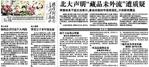 10月底,收藏愛(ài)好者張衡向媒體報(bào)料,稱(chēng)季羨林私人藏品流入拍賣(mài)市場(chǎng)。11月5日,北大發(fā)出官方聲明稱(chēng)尚未發(fā)現(xiàn)季老藏品外流的情況。