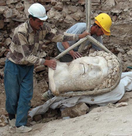 在2007年,一臺(tái)挖掘機(jī)在工作中得到了一個(gè)意外發(fā)現(xiàn),考古學(xué)家在土耳其中部的考古挖掘中發(fā)現(xiàn)了巨型羅馬帝王大理石人首。