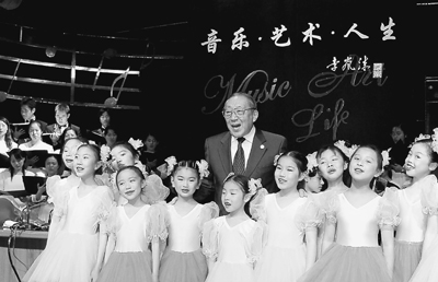 李嵐清和孩子們?cè)谝黄鸪。蘇雨恒攝