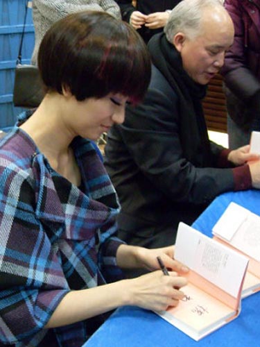 畢業(yè)于復(fù)旦大學(xué)法語系的尚雯婕是2006年度“超女”,在度過了2年藝人生涯之后,尚雯婕日前臨時(shí)客串“譯人”,獨(dú)立翻譯完成了法語小說《林先生的小孫女》。昨天在上海書城舉行的簽售會(huì)上,尚雯婕的粉絲蜂擁而至,有粉絲甚至沒等書城開門就開始排隊(duì)。一向不太熱鬧的引進(jìn)翻譯類圖書簽售會(huì),因?yàn)閵蕵访餍堑募用硕惓;鸨?/p>