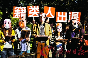 昨日下午2時(shí)30分許,行為藝術(shù)家流野、黎永泰等帶領(lǐng)40余人在廣州人民公園舉行儀式,宣布“退出人類(lèi)籍”,并表演了“退人類(lèi)操”。他們還選出10個(gè)退出人類(lèi)后甘愿進(jìn)化為動(dòng)物的先進(jìn)分子進(jìn)行了宣誓。誓詞的大意為:我甘愿退出人類(lèi)籍,順應(yīng)天理,遵守大自然的規(guī)律與公道,執(zhí)行造化的暗示,正義地反對(duì)人類(lèi)為所欲為的戰(zhàn)爭(zhēng)、掠奪與虛偽,為宇宙、自然界的真正和諧解放而奮斗終身!此舉引來(lái)數(shù)百人聚集圍觀,公園方面如臨大敵,派出保安現(xiàn)場(chǎng)維持秩序。儀式結(jié)束后,40余個(gè)宣稱(chēng)已經(jīng)是動(dòng)物不是人類(lèi)的行為藝術(shù)家,還舉著“退出人類(lèi)籍”牌步行15分鐘,到附近菜市場(chǎng)慰問(wèn)了待宰的動(dòng)物,表示慰問(wèn)和默哀。