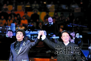 昨晚,郎朗2009北京新年音樂(lè)會(huì)在國(guó)家體育館舉行,這是奧運(yùn)場(chǎng)館第一次向一位古典音樂(lè)家開(kāi)放,而對(duì)于大多數(shù)北京觀眾來(lái)說(shuō),到體育館欣賞音樂(lè)會(huì)也是一次新鮮的體驗(yàn),不過(guò)昨晚的演出氣氛多少有點(diǎn)別扭,郎朗和北京交響樂(lè)團(tuán)的演奏是高質(zhì)量的,但體育館的環(huán)境卻很難讓人靜下心來(lái)。