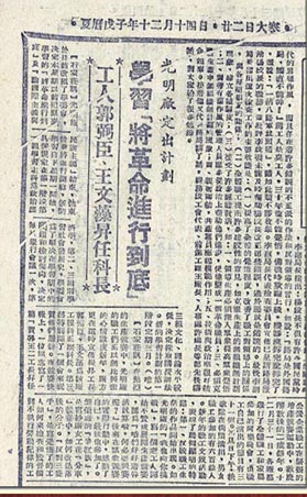 4.1949年1月12日《人民日報》第3版刊登的報道:光明廠定出計劃,學(xué)習(xí)《將革命進(jìn)行到底》