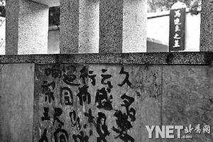 北京大學(xué)中文系的研究生小侯是在上周進(jìn)行實(shí)地文史考察時(shí)發(fā)現(xiàn)這一現(xiàn)象的,當(dāng)時(shí)他正籌劃為報(bào)紙撰寫有關(guān)北京旅游地理的文章。在他拍攝的照片里記錄了被涂在告知碑背后的綠色文字:“山從此地始,地到墳前終”。字跡凌亂,七扭八歪。