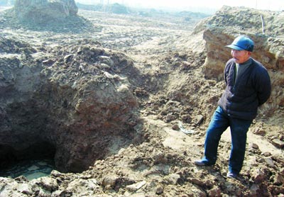 此時(shí),這兩處地方已經(jīng)沒有村民挖掘了,但還殘留著村民們挖銀元時(shí)留下的許多土坑,大大小小的坑一個(gè)連著一個(gè),有的坑甚至有三四米深,與周圍平整的土地形成了鮮明對比!白蛱烊齻(gè)小伙子還在挖,挖出來三只黃色的破碗,銀元已經(jīng)被找完了!”褚大爺說,1月18日前后發(fā)現(xiàn)了第一個(gè)出銀元的地方,年后又發(fā)現(xiàn)了第二個(gè)地方。