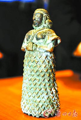 經(jīng)埃及文物部門(mén)的考證和鑒定,銅像創(chuàng)作于兩河流域文明時(shí)期,描繪的是一名正在祈禱的婦女(見(jiàn)右圖)。