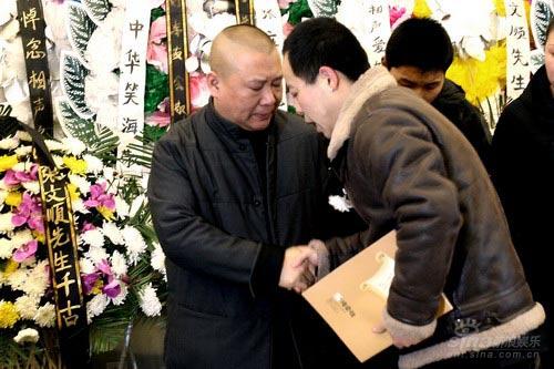 當(dāng)?shù)跹浠顒?dòng)進(jìn)行到一半時(shí),眼尖的綱絲看到了人群中排隊(duì)的徐德亮和王文林,但二人對(duì)指指點(diǎn)點(diǎn)毫不在意,表情悲傷地依次前行。徐德亮師承張文順,但之前因離開(kāi)德云社,被清理出門戶。徐德亮行鞠躬禮時(shí),“撲通”跪倒在張文順遺體跟前連磕四個(gè)響頭,起來(lái)時(shí)已是淚眼婆娑。他與郭德綱和張文順家屬一一握手致意,稍后未作停留走出了殯儀館。眾多媒體追趕徐德亮,問(wèn)他再“入”德云社的心情。徐德亮不愿多講,他稱張先生受疾病困擾已多年,希望老先生能一路走好。